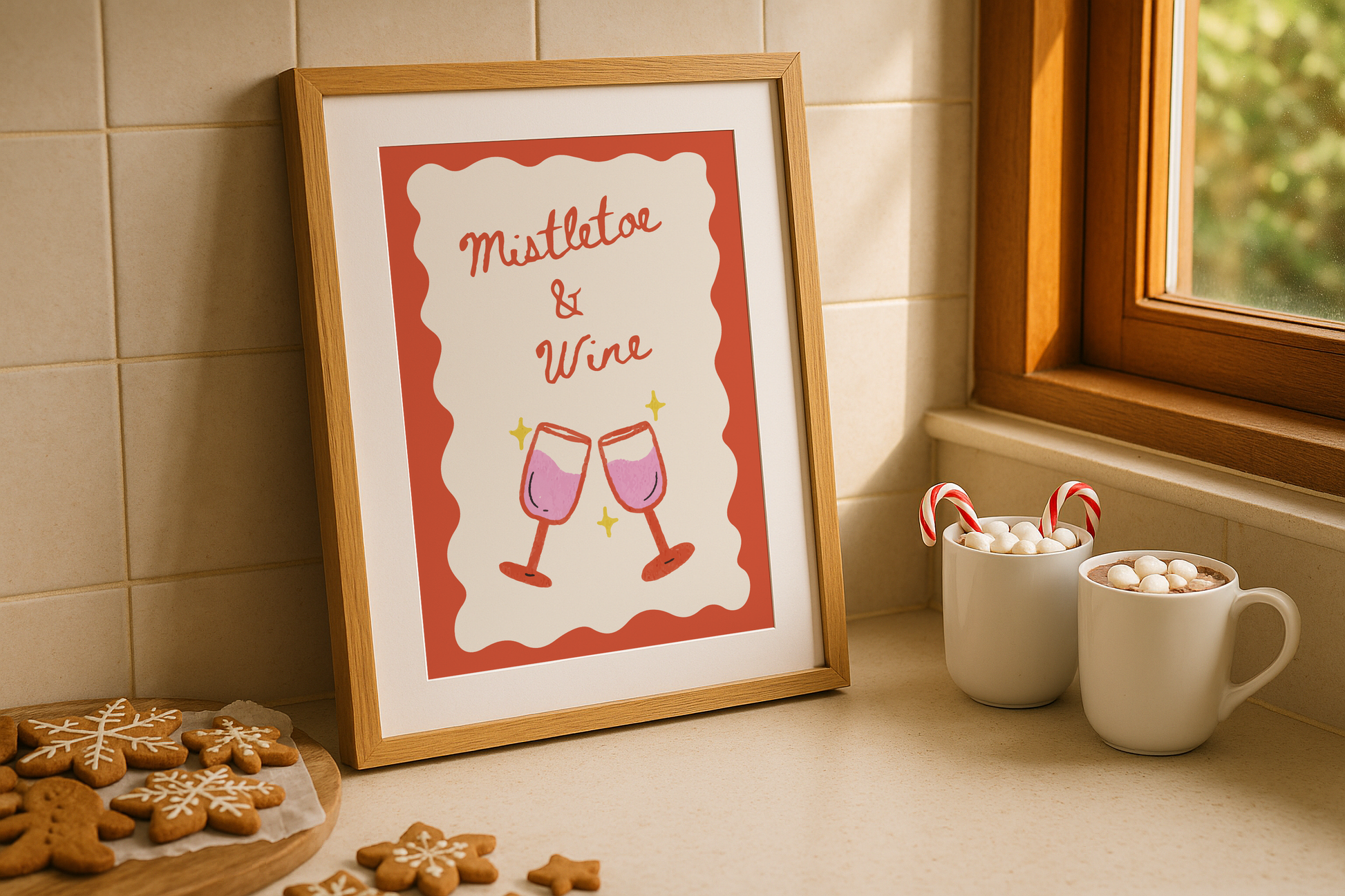 Mistletoe & Wine Christmas Print